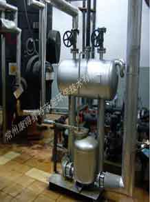 通常冷凝水可以通過(guò)疏水閥很方便地排出設(shè)備,進(jìn)入冷凝水排放系統(tǒng),如果冷凝水已經(jīng)被污染,則應(yīng)該直接排放掉;如果沒(méi)有污染,可以將其回收到鍋爐給水箱以利用冷凝水含有的熱量,這樣同時(shí)也節(jié)省了水和水處理的費(fèi)用。有時(shí)用汽設(shè)備內(nèi)部會(huì)產(chǎn)生真空,這樣會(huì)影響冷凝水的排出,從而影響蒸汽換熱效率,這時(shí)冷凝水就需要用泵壓出去。